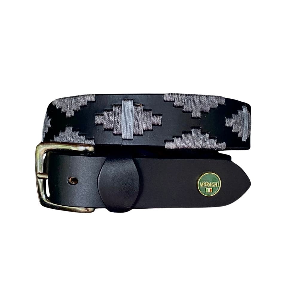 Voor de liefhebbers van zwart. Een zwart leren polo riem met zilverkleurige gesp. De wax garens zijn donkergrijs met lichtgrijs gecombineerd.